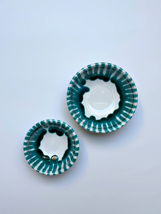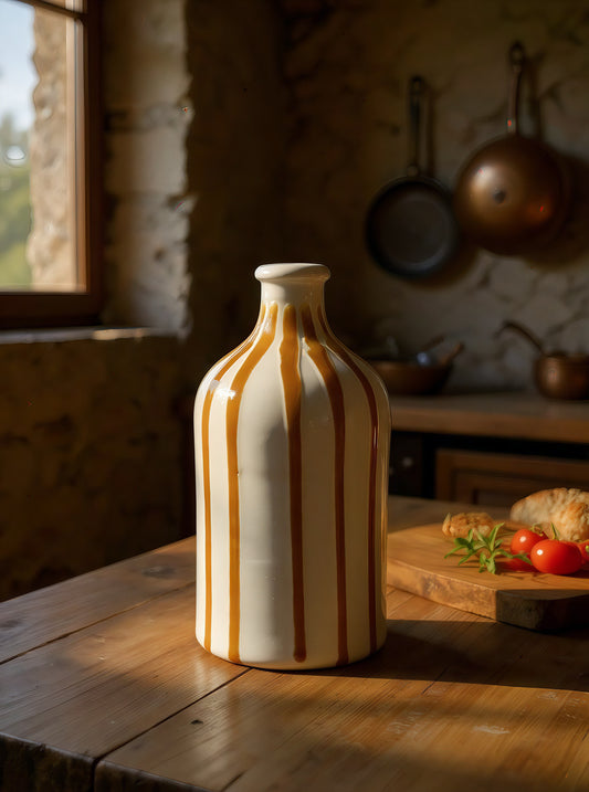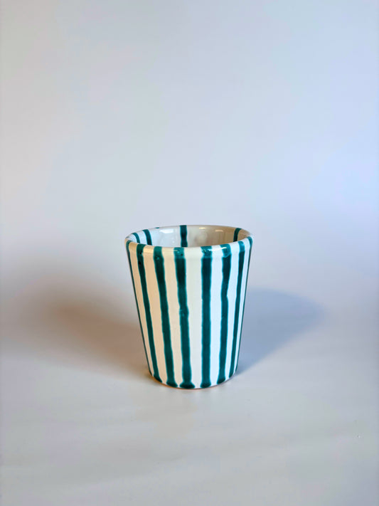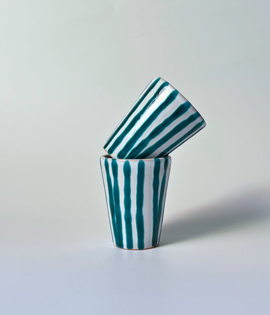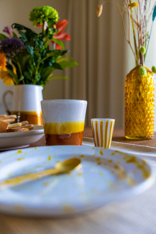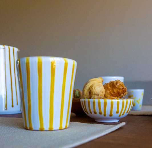 Geef je tafel een frisse, stijlvolle look met onze Striped collectie! Geinspireerd op het traditionele keramiek uit Puglia brengt dit servies jouw tafelstyling naar een hoger niveau. Elk stuk is handgeschilderd en ademt de relaxte, zonnige sfeer van Zuid-Italie. Of je nu een zomerse brunch of een gezellig diner serveert, dit servies -een favoriet in de gezellige boetiekjes van Puglia- brengt moeiteloos een hoppe, mediterrane vibe in huis!